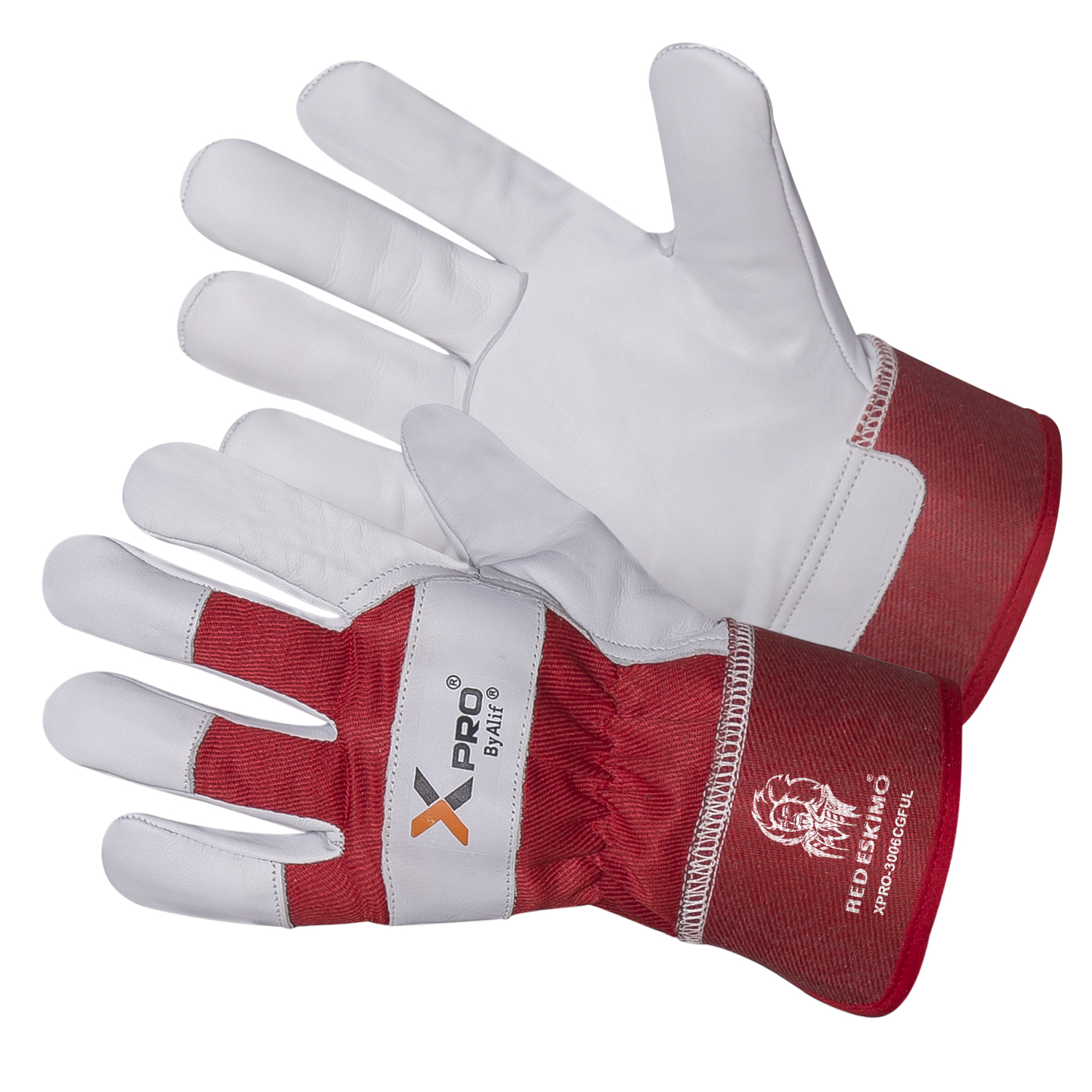 3006CGFUL Red-Eskimo Artificial Fur Lining (Sherpa) for cold or winter conditions. Heavy sherpa lining for cold or winter conditions Full-grain cowhide leather Cotton drill back Shirred elastic wrist Slip-on style safety cuff