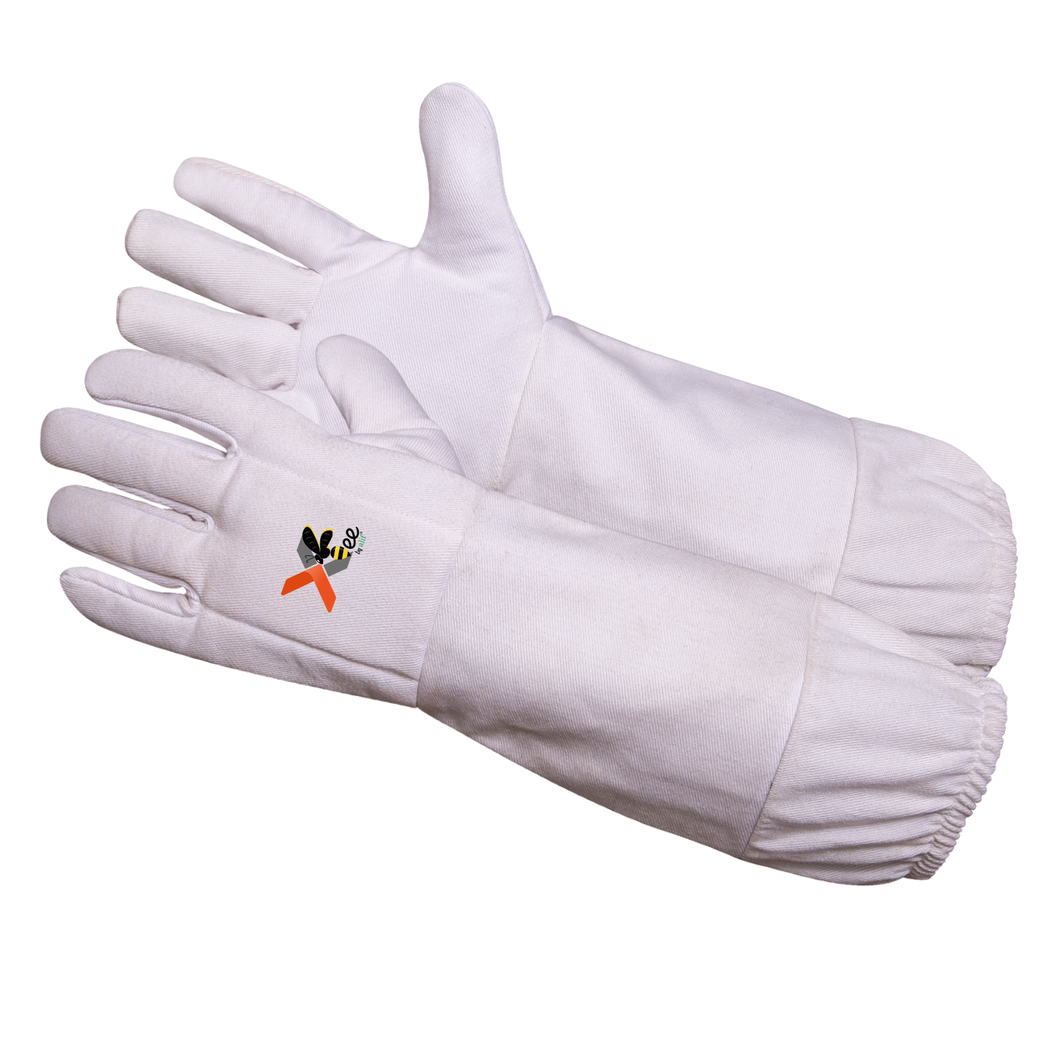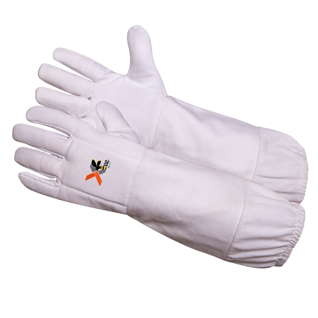 Sting-resistant beekeeping gloves with durable twill sleeves and snug elastic cuffs for ultimate protection and comfort.