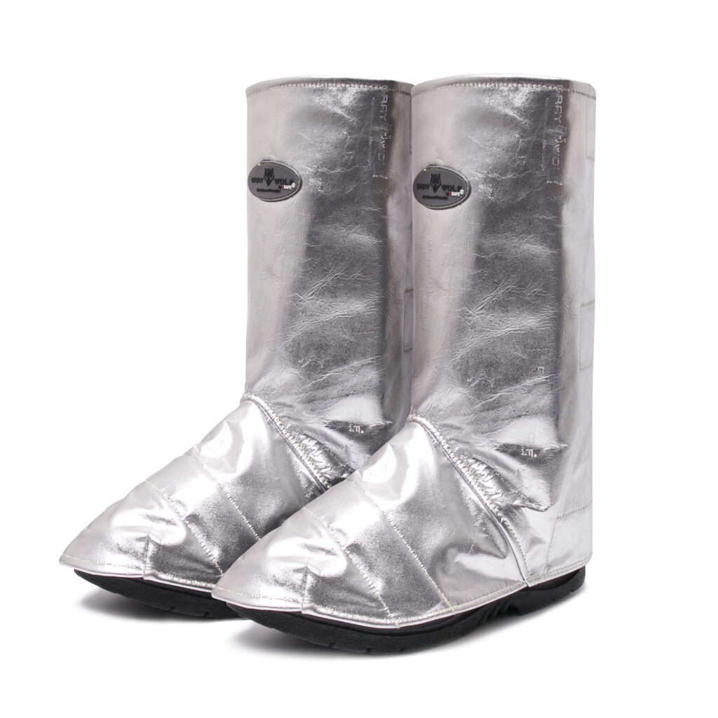 Aluminized safety shoe cover with Kevlar® lining, metal strip support & flame resistance for steel, furnace & welding work.