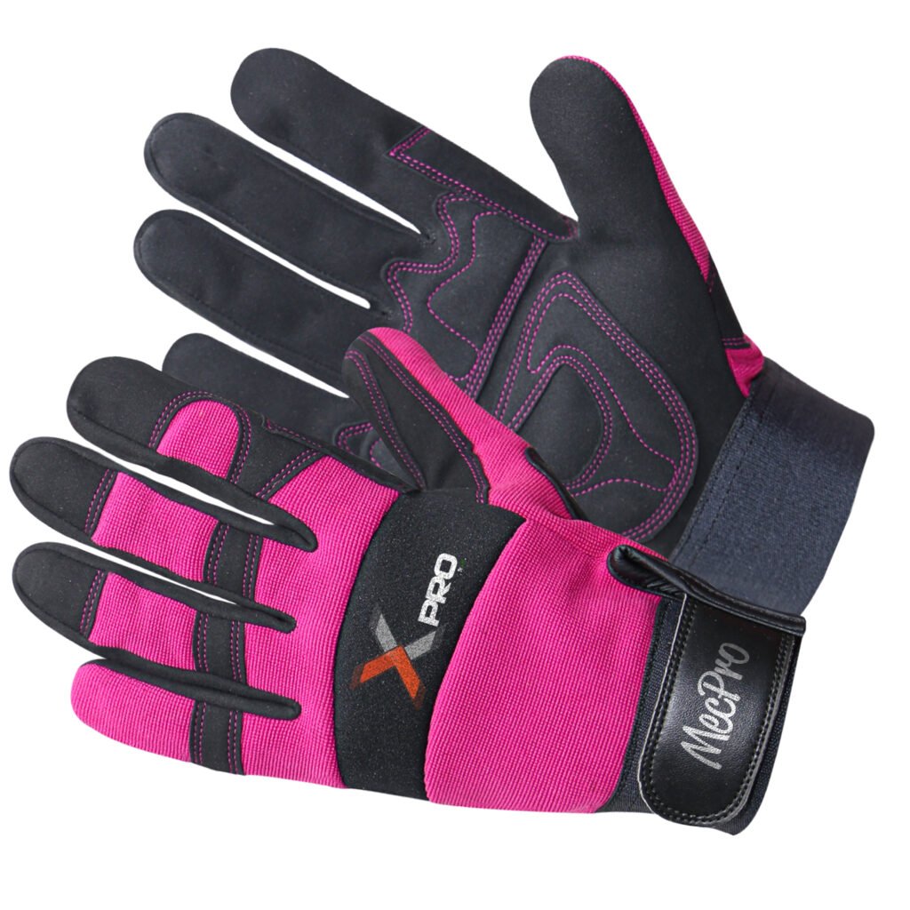 Synthetic Leather Palm with synthetic leather reinforcement, back breathable spandex fabric, Reinforced fingertips and thumb, adjustable Velcro closure for secure fit.